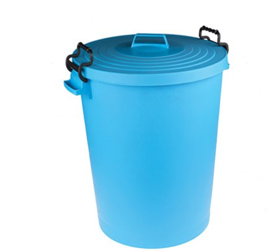 - The bin has hand grips, and the lid with clips makes it easy to lock down.